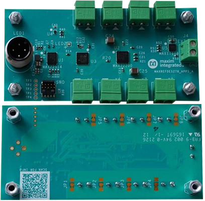 The MAXREFDES278# is a complete IO-Link® 8-Channel solenoid actuator reference design based on a MAX22514 IO-Link transceiver with integrated protection. It demonstrates an 8-Channel solenoid actuator using the MAX22200 1A Octal Integrated Serial-Controlled Solenoid Driver with integrated FETs.